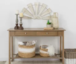 Looking to brighten up your walls with a touch of country décor? Adding this half windmill wheel will add a fresh look with a touch of rustic style. The design features beige painted metal with a weathered finish. Perfect for styles from cottage to modern farmhouse, this piece can even be displayed outdoors.