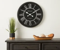 This eye-catching wall clock is a bold addition to any room in the house. With classic Roman numerals and an industrial-feel riveted case, you might find yourself checking the time more than usual! A great fit for a living room, home office or bedroom.