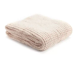 Designed with a textured waffle knit, this cozy throw from Broyhill provides soft warmth and elegant style in any bedroom, living room or office space, and the solid blush color is easy to coordinate with many décor styles.