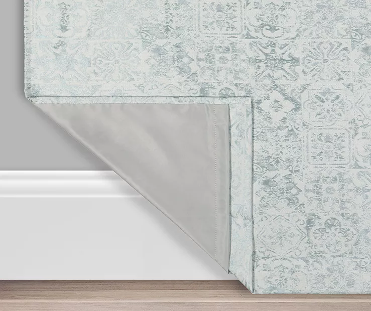 The Lazlo curtain panel from Broyhill elevates your window with style and elegance. Its intricate medallion print in aqua showcases rich color and pattern. A grommet top makes it easy to hang, open and close, while blackout and noise-reducing qualities help to enhance privacy and decrease natural light.