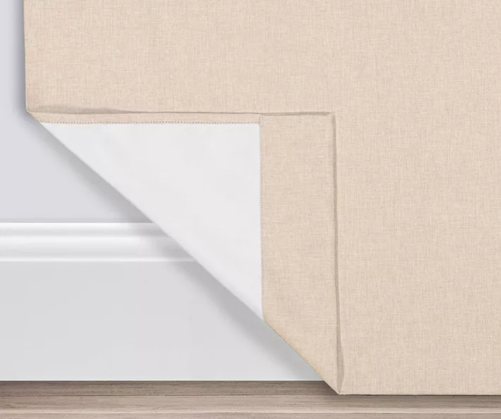 - Textured, tonal fabric in light tan