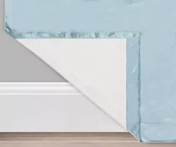 Find the perfect combination of fashion and function with the Eclipse Harper window curtain. This beautiful panel offers Absolute Zero 100% blackout benefits with a premium thermal lining that gives a rich handfeel and provides luxurious drapability. It features solid velvet fabric in blue, which makes it versatile and perfect for the bedroom, living room, dining room or office and allows you to enjoy all of the light-blocking, noise-reducing and energy-saving benefits. Reverse of panel is light gray.