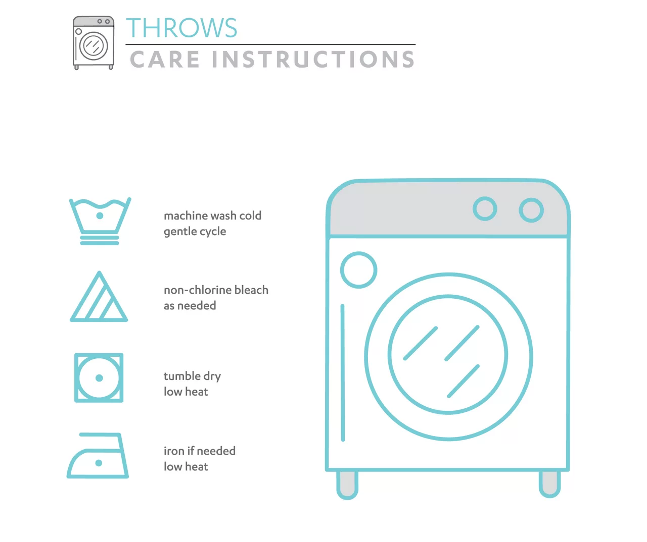 - Machine wash cold on gentle cycle. Use only non-chlorine bleach when needed