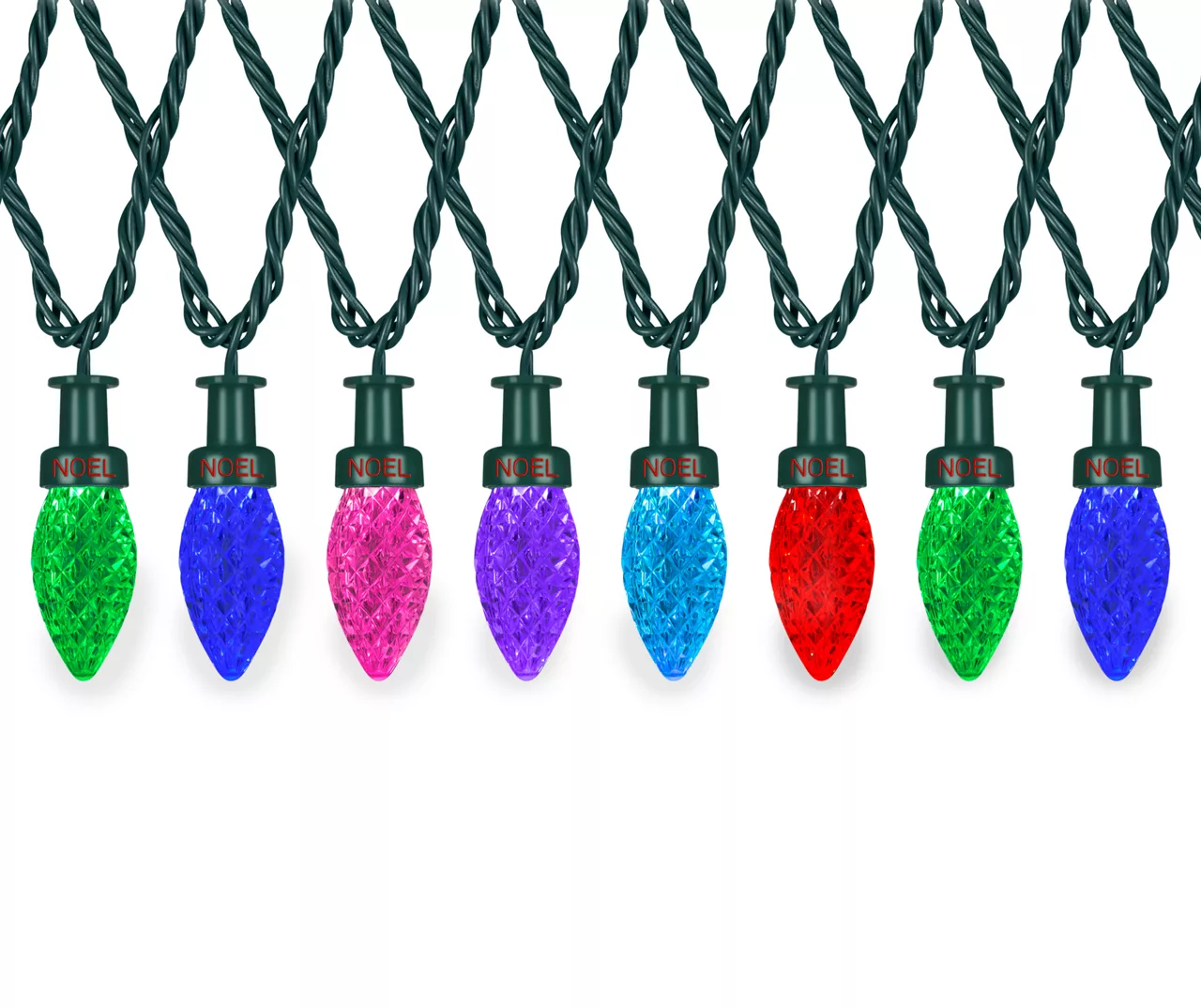 - Each light features the word “noel” in red lettering