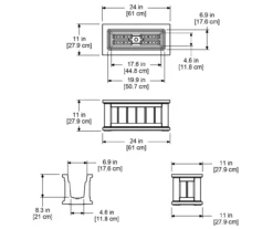 - Outside dimensions: 24”L x 11”W x 11”D