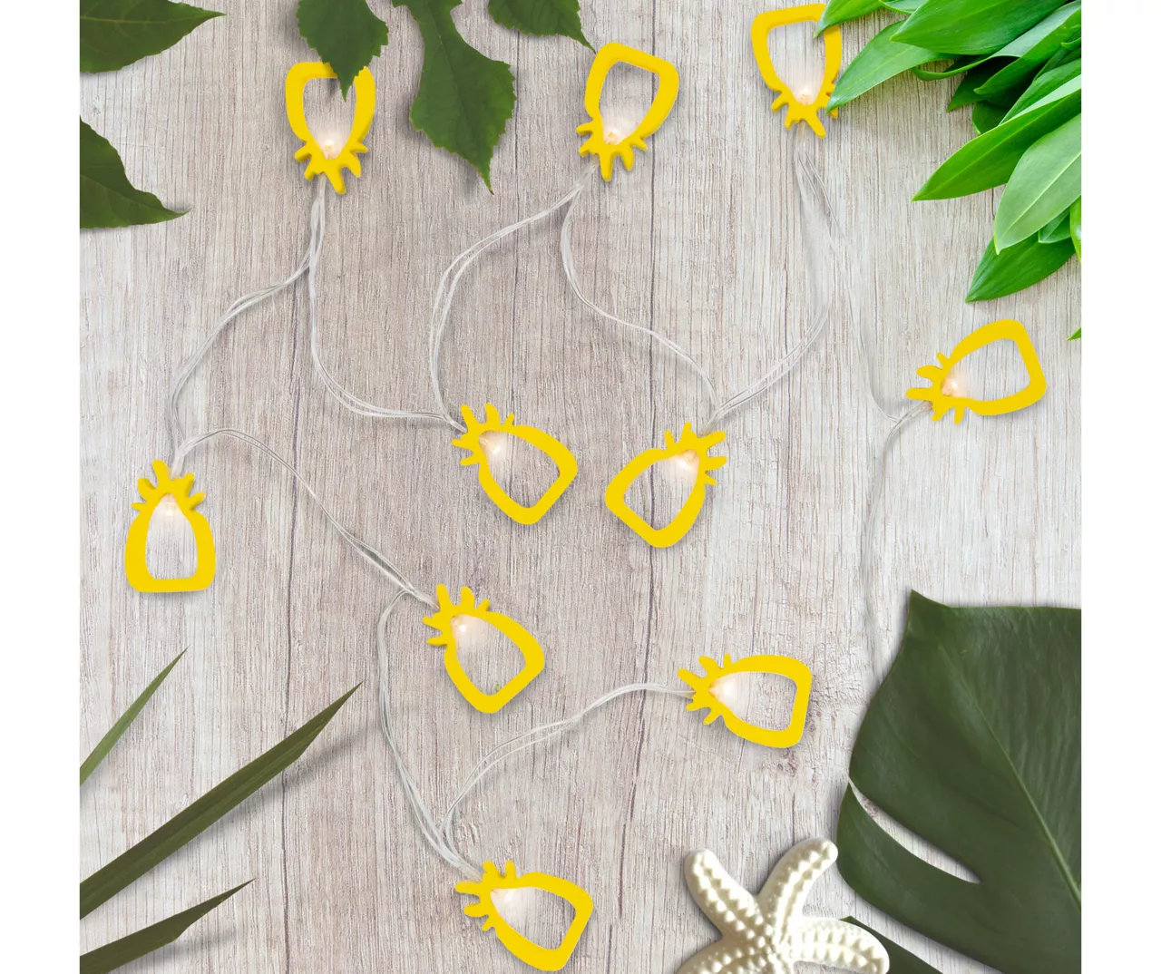 Light up your space with these adorable yellow pineapple-shaped lights. These battery-powered lights allow hanging them from more places without the need for an outlet. Perfect for adding some tropical magic to a wreath, tree, garland or add to your lanterns and vases for some unique sparkle.