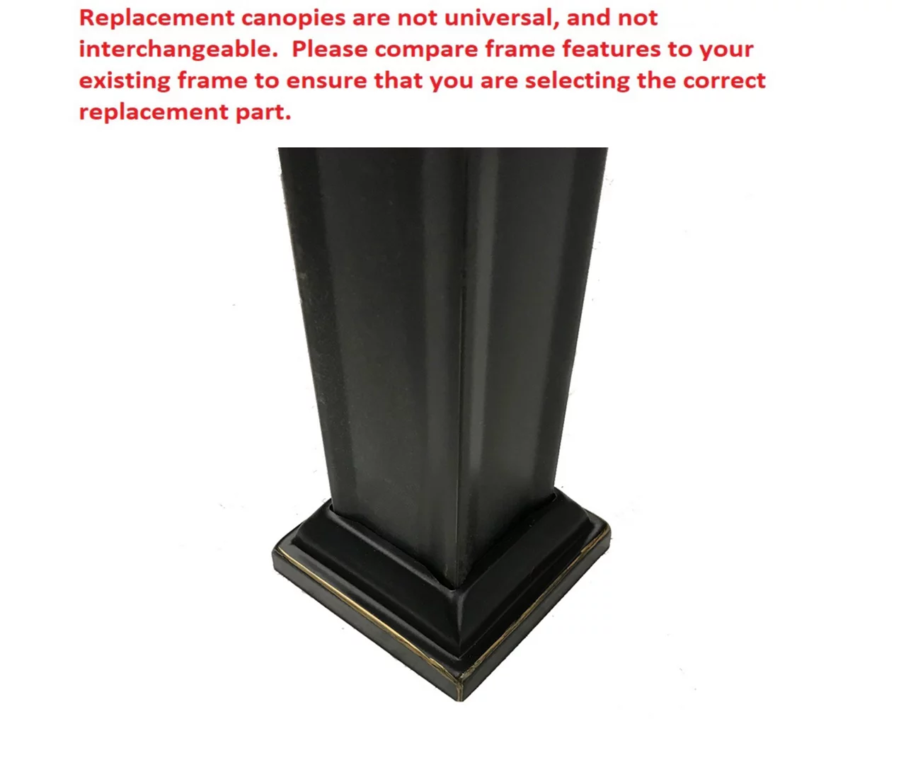 - Replacement canopy top cover only. Other accessories and metal frame parts not included