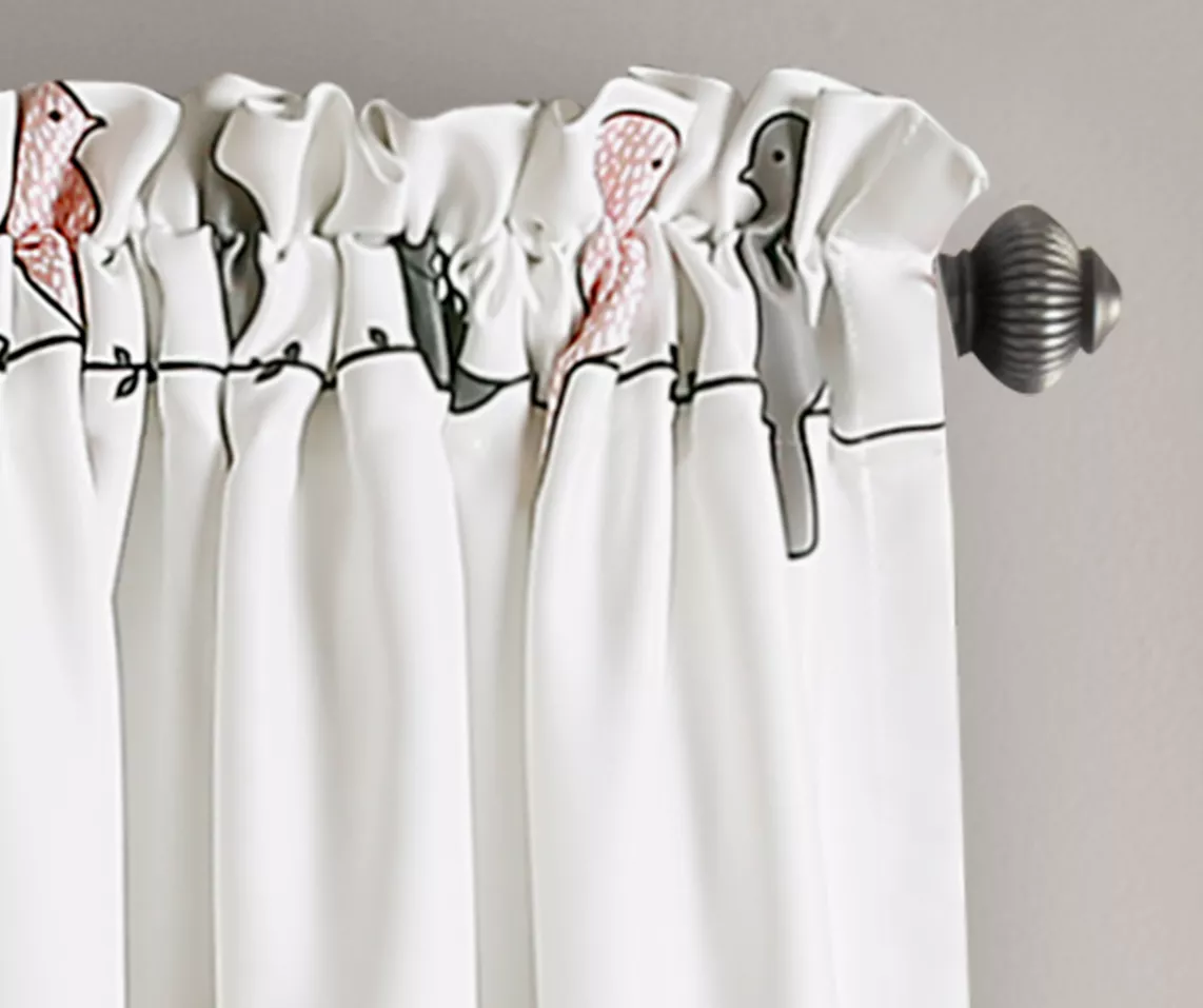 - Room-darkening curtain panels help filter out sunlight and provide privacy