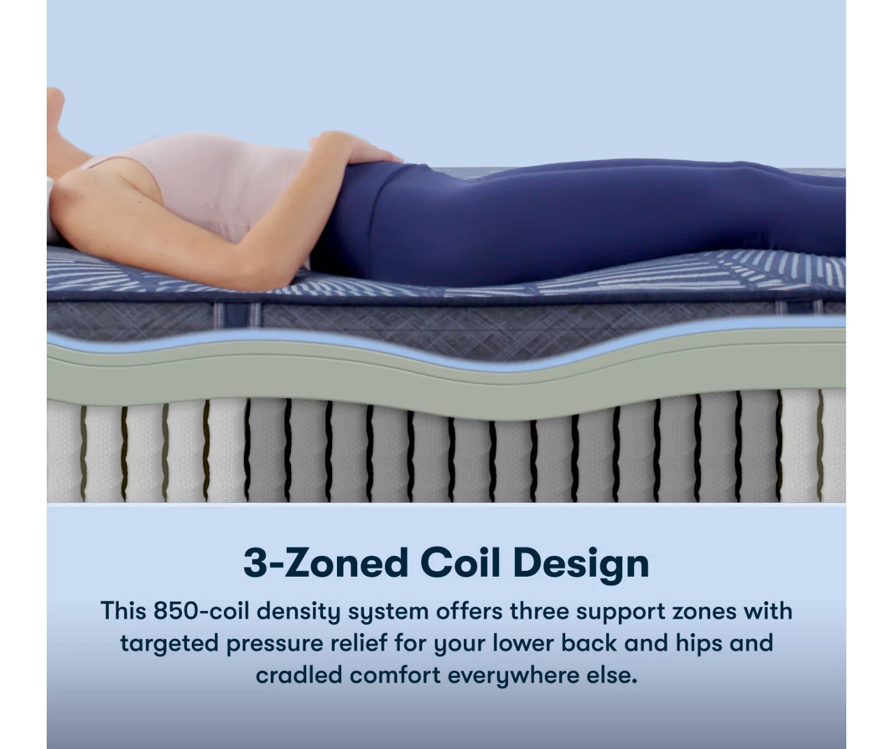 - 850 Coil density system offers 3 support zones with targeted support for your lower back, hips and cradled comfort everywhere else