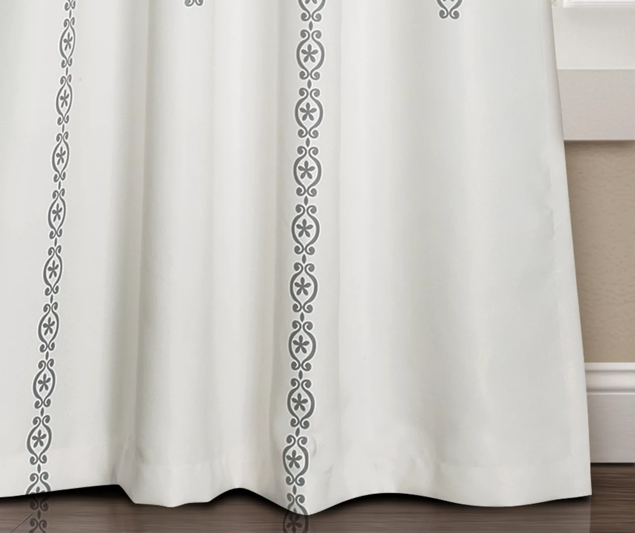 - Room-darkening curtain panels help filter out sunlight and provide privacy