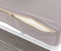 - Light gray weather-resistant olefin cushions with polyfoam construction